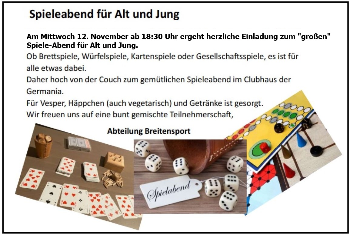 Spieleabend am Mittwoch, den 12.11.25 im Clubhaus